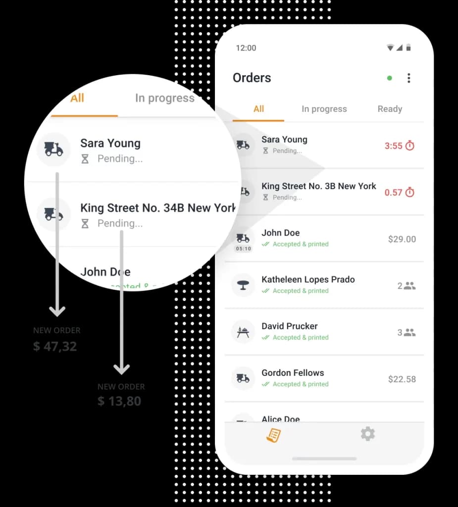 Recibe los pedidos de tus clientes en tiempo real directamente en la cocina.